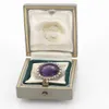 Edwardian amethyst and diamond oval cluster brooch