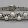 Diamond and Pearl 18ct white gold Bracelet. With 7 pearls. Twenty round brilliant cut diamonds, Colour H/I. Clarity SI1/SI2.Measuring 2mm each, total carat weight approximately 0.30ct. London import h…