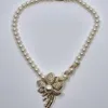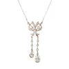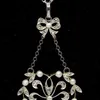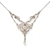A white metal Edwardian style diamond and pearl set garland pendant, the bow top suspending a open work heart shaped garland motif, length approx 50mm, unmarked possibly 9ct gold, total gross weight a…