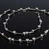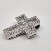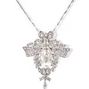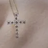 18ct white gold diamond set cross pendant on a white gold fine curb link chain