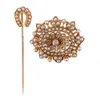 A white metal brooch consisting of six open circles of leaf and floral design, mixed and rose cut diamonds in millegrain settings, with several diamonds missing, estimated existing total weight 0.50-0…