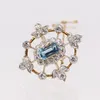 An Edwardian aquamarine and diamond gold brooch, comprising an open work design set to the centre with an elongated emerald cut aquamarine, weighing approx 2.00carat, within a border of old European