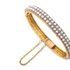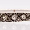 An Edwardian diamond and gold hinged bangle, comprising a platinum set with eleven graduated old cushion cut diamonds, set in platinum to a decorative mount, set with twenty rose cut diamonds set tri