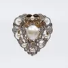 An Edwardian diamond and pearl gold clip, comprising a heart shaped form set to the centre with a pearl approx 10x8mm, within an open foliate and scrolled border set with small old and rose cut diamon…