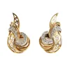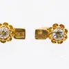 A pair of Chinese gold and diamond set earrings, each comprising an old cut diamond, combined total diamond weight approx 1.10carats, assessed colours M/N, assessed clarities SI1, claw set to a flora