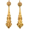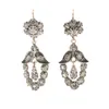 A pair of large diamond set drop earrings in enamelled silver gilt Set with an estimated total of 2.90 carats of diamonds, rose and eight cut. With post findings and butterfly backs. Approximate lengt…