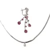 pair of Belle Epoch synthetic ruby and diamond drop earrings