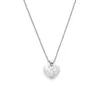 An diamond set white metal Edwardian style heart shaped pendant, comprising a central old cut diamond weighing approx 0.254ct, with two smaller rub over set diamonds either side, within a heart shaped…