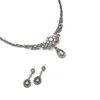 An early 19th century silver and paste set closed back drop necklace, comprising an openwork pearl shaped drop to the centre, approx 38mm, to a row of similar fashioned paste set links, with alternate…