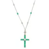 EMERALD AND DIAMOND CROSS PENDANT NECKLACE,EARLY 20TH CENTURY