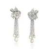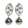 ATTRIBUTED TO BOUCHERON, A PAIR OF PEARL AND DIAMOND EARRINGS (4) — Each with a central pearl measuring 9.8mm and 9.6mm, in a floral spray design of round brilliant, old and transitional cut diamonds,…