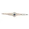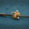 Edwardian yellow metal three leaf clover and seed pearl bar brooch