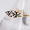 An antique white metal and diamond halo ring the mount of the ring tests as 18ct white gold, the band tests as silver. Total gross weight is approximately 2.35g. Size M/N Condition report: This is a c…