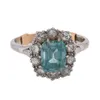 A blue zircon and diamond cluster ring
