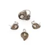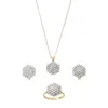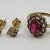 A pair of diamond cluster earrings and a matching ring
