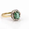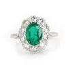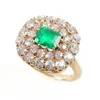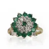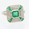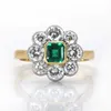An emerald and diamond cluster ring