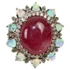 An opal and diamond set cluster ring