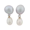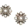 A pair of pearl and diamond cluster earrings