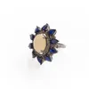 gold sapphire and diamond floral cluster ring