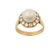 A cultured pearl and diamond ring