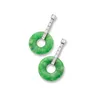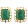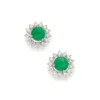 A pair of jade and diamond set cluster earrings