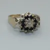 9ct gold sapphire and diamond floral cluster ring
