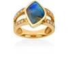 gold blue paste and diamond cluster ring