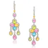 A pair of yellow and colourless diamond set cluster earrings