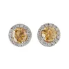 A pair of yellow and colourless diamond cluster earrings