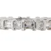 An emerald cut diamond full eternity ring, shared claw set with an estimated total diamond weight of 7.2cts, assessed clarities VS - SI, assessed colour I - K, white metal assessed as platinum, size U…
