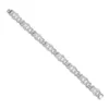 A 9ct. white gold, diamond and ruby line bracelet, having forty-four links, these alternating between link set circular cluster of seven round cut diamonds and links set single round cut ruby, with a …