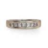 A diamond and 18ct gold half eternity ring, comprising a channel set row of nine square princess cut diamonds, total diamond weight approx 0.50ct, width approx 4mm, size O1/2, 4gms Further details: al…