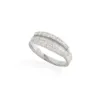 A diamond set 18ct white gold wave ring, comprising two rows of channel set baguette cut diamonds, between three rows of small grain set diamonds, total diamond weight approx 1.40ct (stamped to shank)…