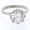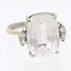An 18ct white gold and colourless stone set solitaire, round mixed cut claw set stone assessed as topaz, measuring approx 10mm, size M1/2, total gross weight approx 5gms Further details: stone intact,…