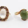 A collection of shopping/Gems TV type rings comprising various styles, sizes and designs, including a emerald cabochon and brown diamond ring, glass filled ruby and white zircon ring, stones green ame…