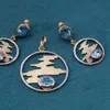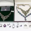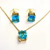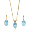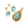 Continental blue topaz and diamond pendant and earring matched suite