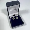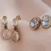 pair of gold blue topaz earrings