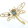 A 9ct dragonfly brooch, the body set with an oval blue topaz, one stone deficient, measures approx 30 x 45mm, with safety chain, total gross weight approx 4gms Further details: one stone deficient min…