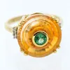 Gemporia - a Glenn Lehrer 9ct gold Torus ring, set with a padparadscha quartz, fern topaz, with diamond set shoulders, width approx 13mm, size N1/2, total gross weight approx 4gms Further details: sto…
