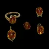 14ct Caribbean Topaz set: To include a ring, pendant, a pair of earrings and a singular earring. The ring has an approximate 5ct stone, as does the pair of earrings whose approximate gross weight is 1…