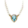A pearl and topaz set necklace