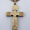 14ct Yellow Gold Cross Pendant on a 9ct Yellow Gold Curb Link chain. The 14ct Yellow Gold Cross Pendant with Jesus Christ on a cross and 'INRI' written above Jesus Christs head. The Pendant measures