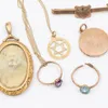 9ct gold locket pendant and a 9ct gold shell cameo brooch