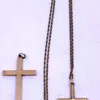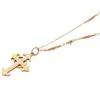 A 9ct gold textured cross, size approx 25mm, suspended from a fine yellow metal chain, length approx 22'', combined weight approx 2.5gms Further details: some dents to cross, wear and tear commensura