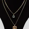 A 9ct gold rectangular locket, size 26 x 22mm, on a diamond cut link chain, length approx 60cm, along with a square step cut aquamarine pendant, approx 12mm, on a 9kt marked figaro link chain, length