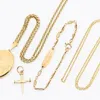 x2 9ct gold chains and pendants, one plain polished crucifix hung from an oval link belcher chain and a gold cased locket hung from a flab fine curb chain 14.2 grams approx Further details: overall co…