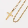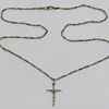 A precious yellow metal Corpus Christi, height 27mm (yellow metal assessed as 18ct. gold), suspended from a 22ct. gold chain, length 57cm. (total gross weight 8.9g)