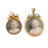 TWO PENDANT OPENFACED LOCKETS (2) — The larger set with seed pearls and stamped 9ct, measuring 33.1mm in diameter, the smaller with a bow motif, measuring 25.8mm in diameter, both with portraits of a