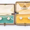 cased set of two 18ct gold split pearl and onyx dress studs