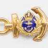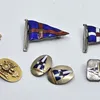 A single 9ct. gold oval cufflink, with applied gold insignia of the Blues and Royals (RHG/D), Birmingham 1963, chain fitting (6.6g), together with a single 9ct. gold oval cufflink, with enamel burgee …